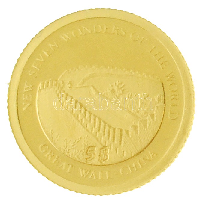 Solomon Islands 2011. 5 Dollars Au "New Seven Wonders of the World - Great Wall of China" with certificate (0,5g/585/11mm) C:PP