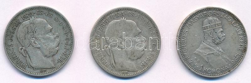 Leírás: 1894KB-1895KB 1K Ag "Ferenc József" (2x) + 1896KB 1K Ag "Millennium" T:2-,3