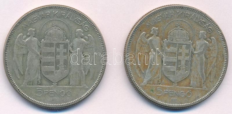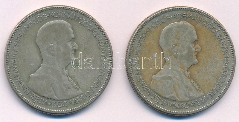 Leírás: 1930. 5P "Horthy Jobbra" Ag (2x) T:3 patina