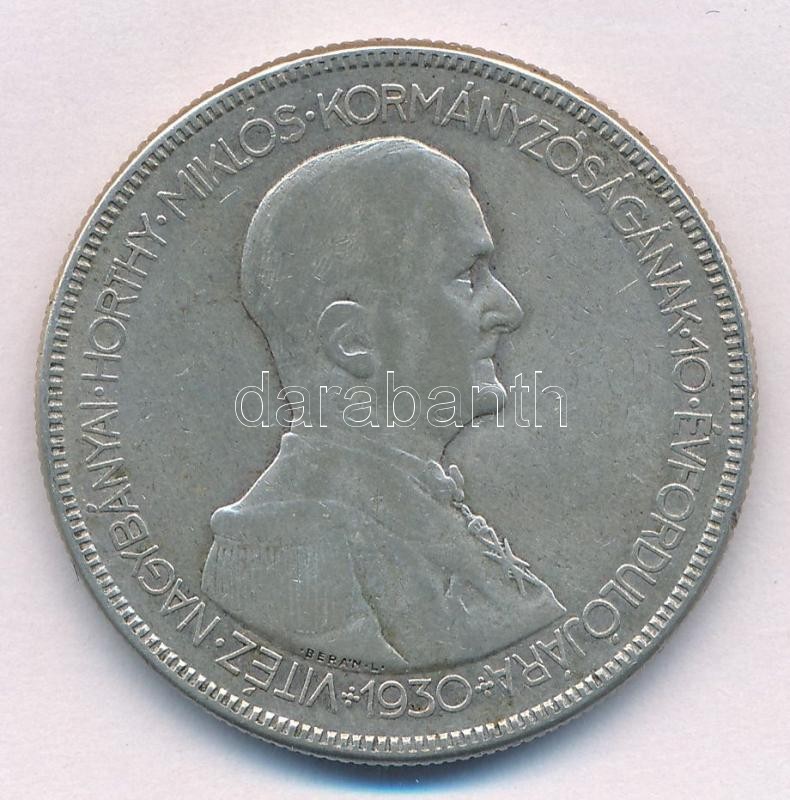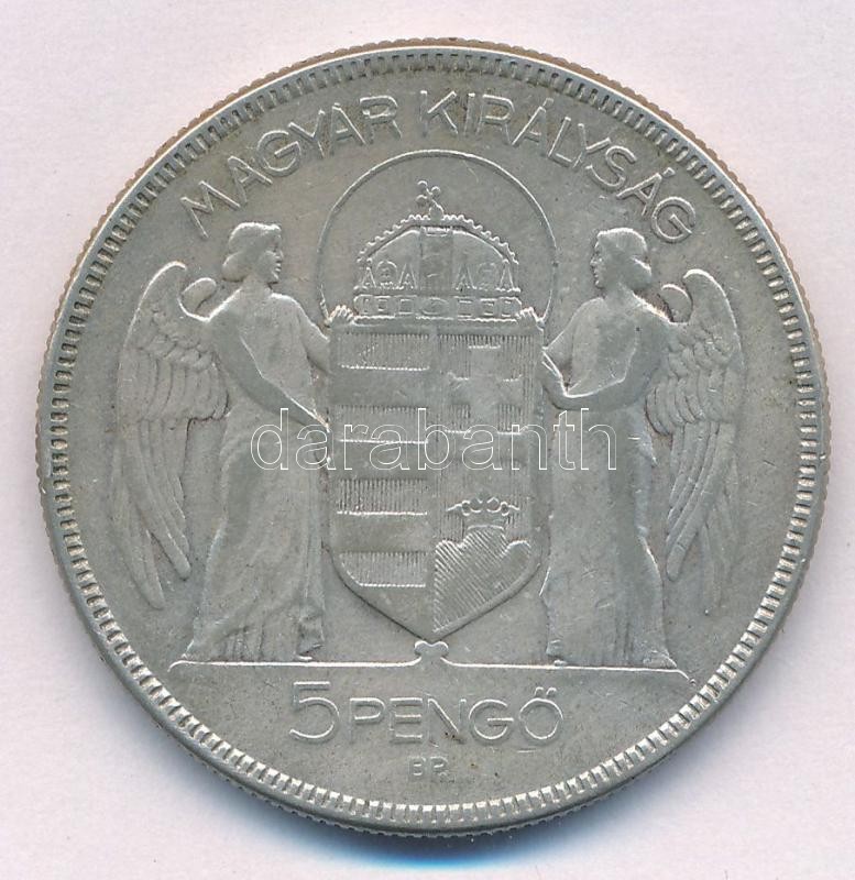 Leírás: 1930. 5P "Horthy Jobbra" Ag T:2-,3 patina Adamo P8