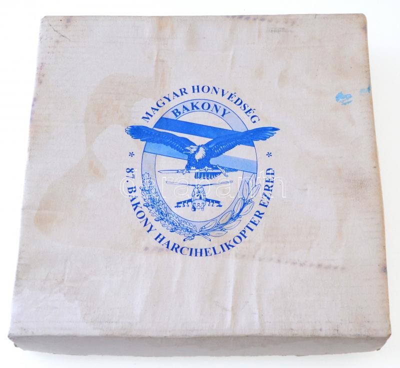 Leírás: DN "MH (Magyar Honvédség) Légvédelmi Parancsnokság Veszprém" festett porcelán plakett "Magyar Honvédség - Bakony - 87. Bakony Harcihelikopter Ezred" papírtokban (ázásnyomok) (154mm) T:2