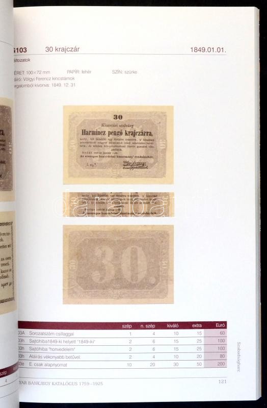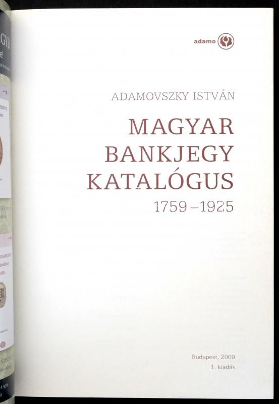 Adamovszky István: Magyar bankjegy katalógus 1759-1925. Budapest, 2009... https://www.darabanth.com/hu/370-Gyorsarveres/370.0/Numizmatika/Numizmatikai-kellekek~2000001/Adamovszky-Istvan-Magyar-bankjegy-katalogus-1759-1925-Budapest-2009-Elso-kiadas-Uj-allapo~II2160320