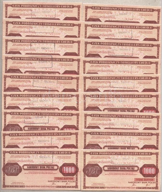Poland 1989. 1000 Zlotych (18x) sequential serials "Narodowy Bank Polski" travellers cheque C:AU,XF