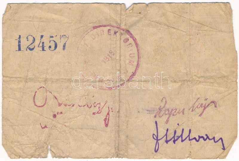 Leírás: Magyaróvár / Mosonvármegye Direktóriuma 1919.05.07. 10K papír szükségpénz, hátoldalán bélyegzés, aláírás és sorszám T:IV