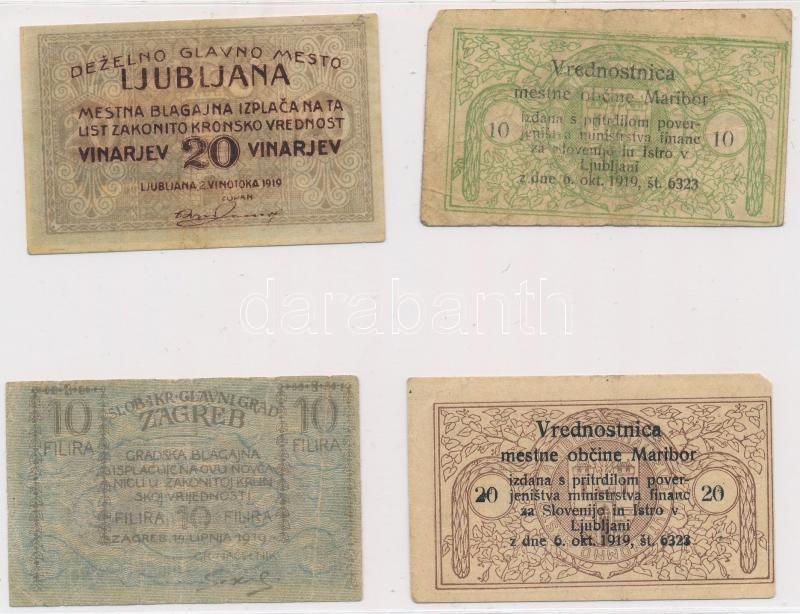 Leírás: Szerb-Horvát-Szlovén Királyság / Zágráb 1919. 10f + Maribor 1919. 10V + 20V + 1919. Ljubjana 20V T:III,III-