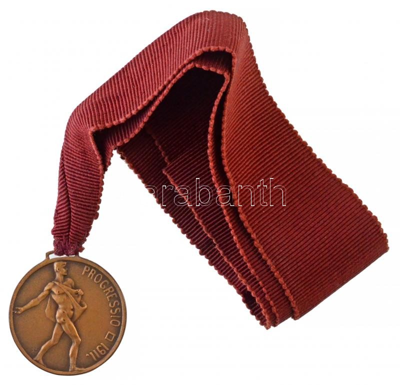 Leírás: Kisfaludi Stróbl Zsigmond (1884-1975) 1911. "Progressio 1911" Br, fülezett szabadkőműves páholy emlékérem szalaggal (38mm) T:1-,2