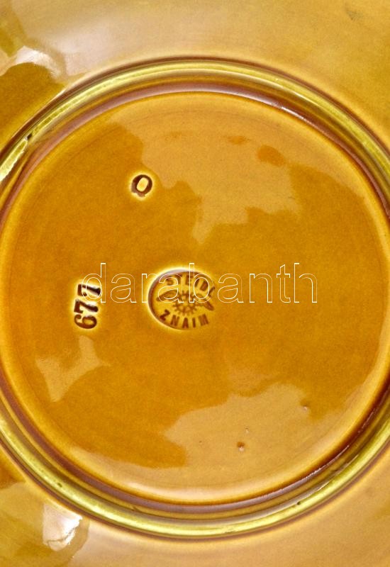 Leírás: 3 db Steidl Znaim antik levélmintás kerámia süteményes tányér, kézzel festett, jelzett, 677 formaszámmal, lepattanásokkal, d: 20 cm