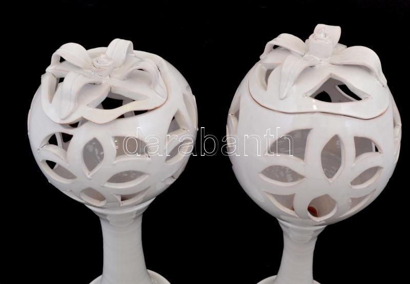 Leírás: 4 db nagy méretű kerámia asztali lámpa levehető fedéllel. Jelzés nélkül. Kis lepattanással. 35 cm