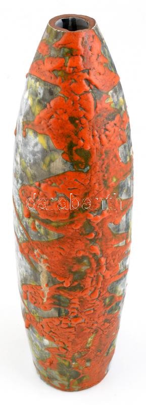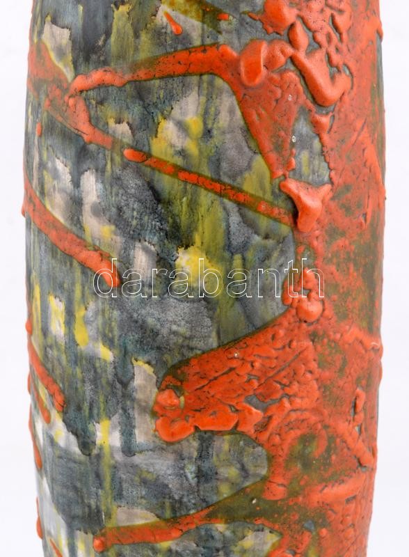 Leírás: Nagyméretű retró mázas kerámia váza, olvashatatlan jelzéssel (Szilágyi?), apró kopásokkal, m: 52 cm