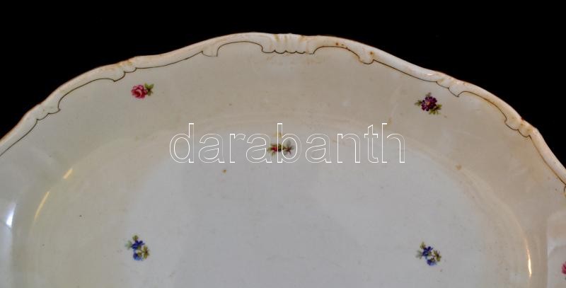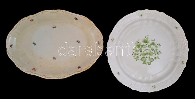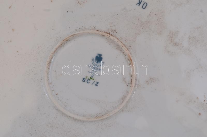 Leírás: Zsolnay + Hollóházi porcelán tál, Jelzettek, kopásokkal 37x26 cm, d: 34 cm