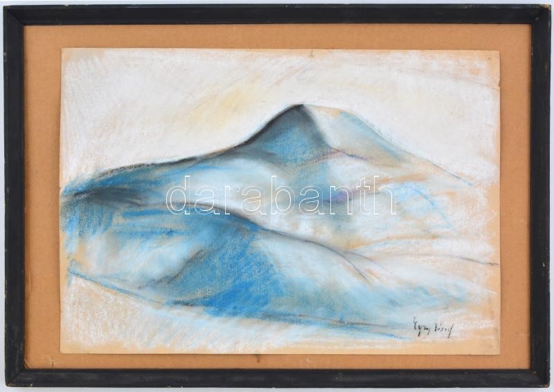 Leírás: Egry jelzéssel: Hegy. Pasztell, papír, sérült, kartonra kasírozva, fa keretben, 30x43 cm