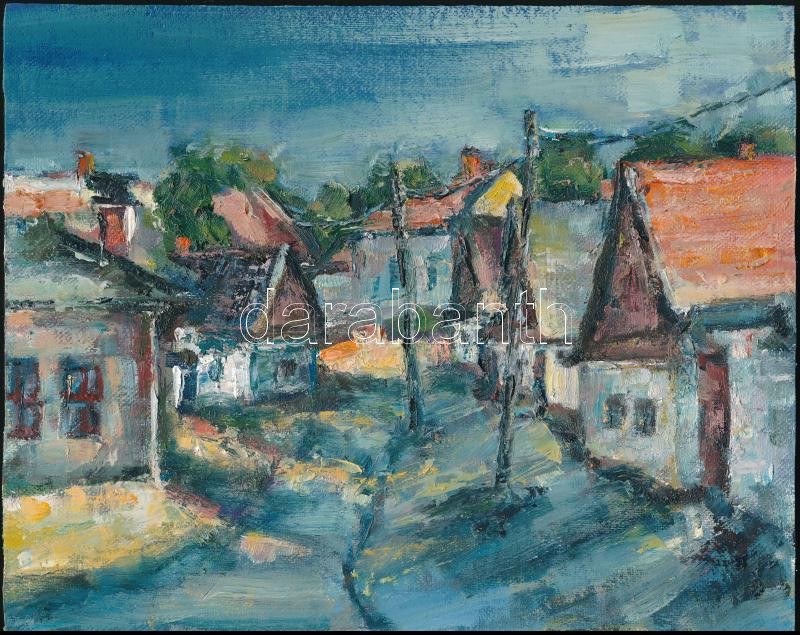Leírás: Jelzés nélkül: Utcarészlet. Olaj, farost, 20×25 cm