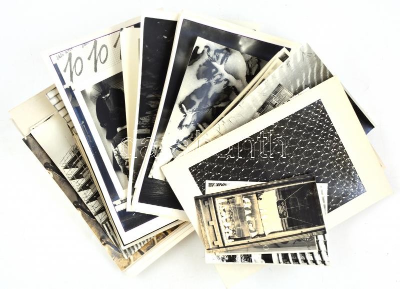 cca 1970-85 Vegyes nagy fotó tétel, össz kb. 50 db: 8 db kirakatokról, fennmaradó fotók művészfotók, tájképek, városi részletek (2 db Dunakorzó, Bp. Többségükk hátoldalán jelzett (Nádor Géza, Csalló Andrea, Balog S, Balogh Gyula, Fábián Annamária, Gudlin Tamás). Hullámos, kisebb részben sarkainál megtört. 10x15 és 20x30 cm közötti méretekben.