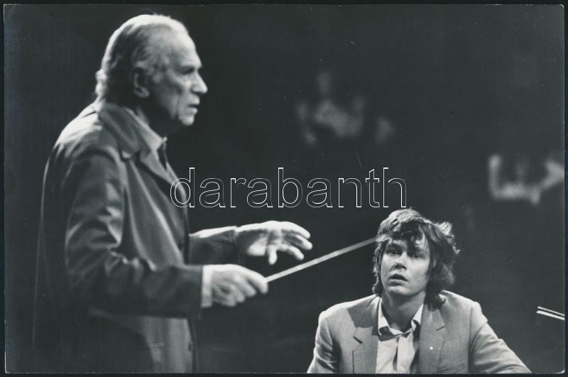 cca 1978 Doráti Antal (1906-1988) karmestert figyeli Kocsis Zoltán (1952-2016) zongoraművész, karmester, zeneszerző, publikált fotó, készítette Fejér Gábor, hátoldalon pecsételve és feliratozva, 16×24 cm