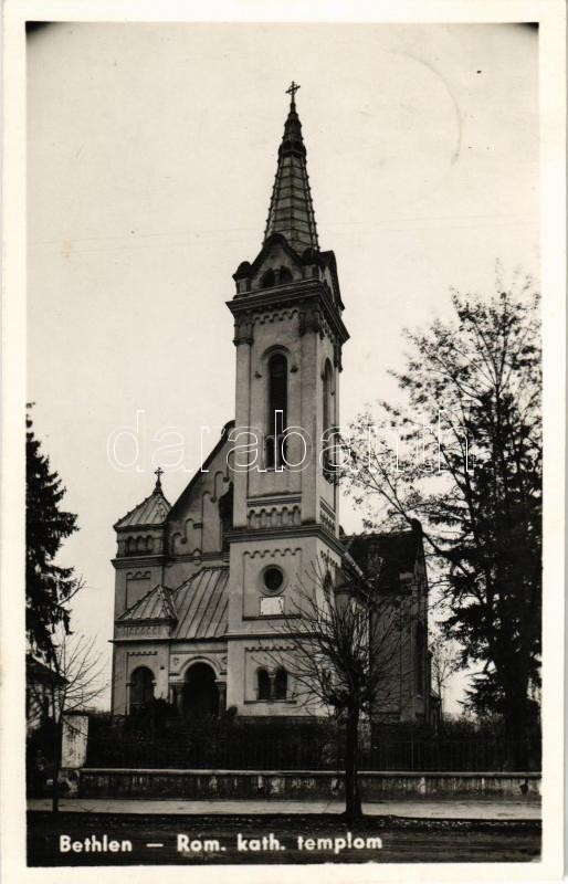 1944 Bethlen, Beclean; Római katolikus templom / Catholic church https://www.darabanth.com/hu/371-Gyorsarveres/371.0/Kepeslapok/Erdely~1500006/1944-Bethlen-Beclean-Romai-katolikus-templom-Catholic-church~II2166383
