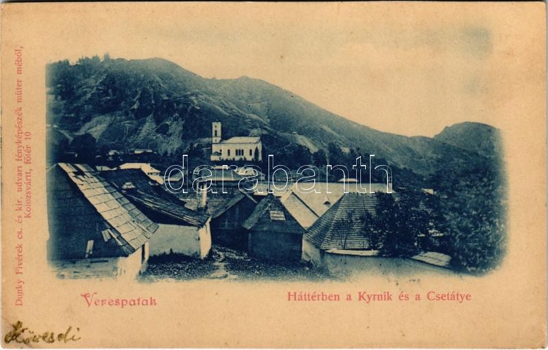 Leírás: Verespatak, Goldbach, Rosia Montana; Háttérben a Kyrnik és a Csetátye. Dunky fivérek kiadása / mountains