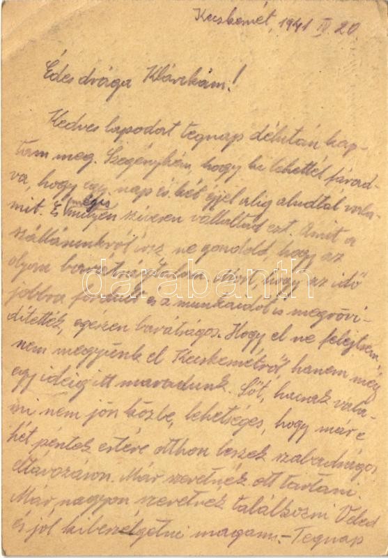1941 Szász György zsidó III KMSZ (közérdekű munkaszolgálatos) zlj. II. 12. levele feleségének Szász Klárának a kecskeméti munkatáborból / WWII Letter of a Jewish labor serviceman to his wife. Judaica (EK)