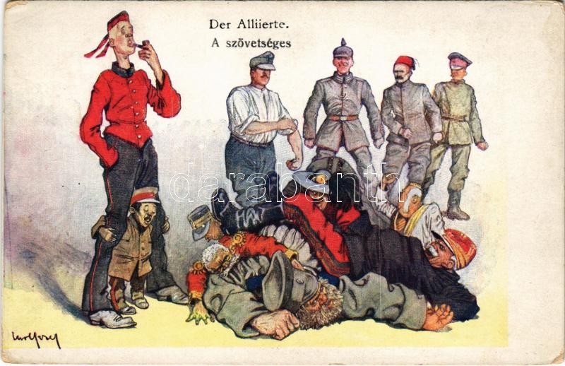1917 Der Alliierte / A szövetséges / WWI Austro-Hungarian K.u.K. military art postcard, Central Powers propaganda, humour. B.K.W.I. 259-196. s: Carl Josef (EK)