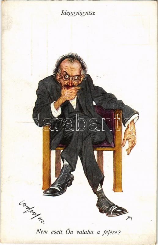 Leírás: Ideggyógyász: Mérget vehet a megállapításomra! / Neuropathist doctor humour. B.K.W.I. 898-3. s: Fritz Schönpflug