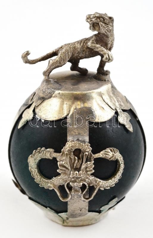 Leírás: Tigris figura malachit gömbön, m: 6 cm