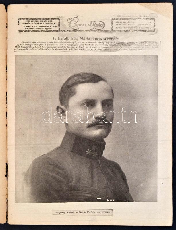 1918. szeptember 12. Az Érdekes Újság VI. évfolyamának 36. száma, ben... https://www.darabanth.com/hu/371-Gyorsarveres/371.0/Mutargy-papirregiseg-egyeb/Nyomtatvanyok~500030/1918-szeptember-12-Az-Erdekes-Ujsag-VI-evfolyamanak-36-szama-benne-kepek-az-I-vh-esem~II2161038