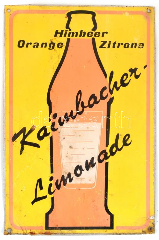 Kaimbacher Limonade, zománcozott fém tábla, enyhén rozsdás, kopottas á... https://www.darabanth.com/hu/371-Gyorsarveres/371.0/Mutargy-papirregiseg-egyeb/Reklam~500021/Kaimbacher-Limonade-zomancozott-fem-tabla-enyhen-rozsdas-kopottas-allapotban-30C39720-cm~II2167661