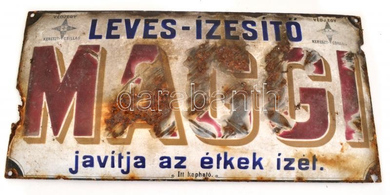 Maggi leves-ízesítő, zománcozott fém tábla, rozsdás, erősen kopottas á... https://www.darabanth.com/hu/371-Gyorsarveres/371.0/Mutargy-papirregiseg-egyeb/Reklam~500021/Maggi-leves-izesito-zomancozott-fem-tabla-rozsdas-erosen-kopottas-allapotban-24x49-cm~II2167683