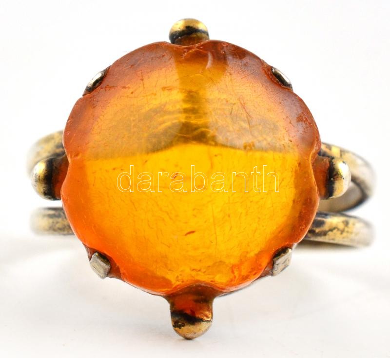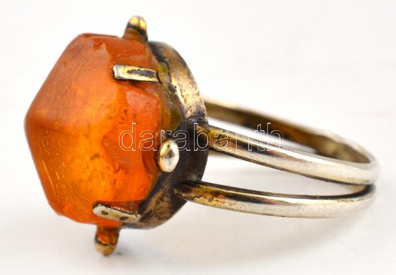 Leírás: Ezüst (Ag) gyűrű borostyán kővel, jelzett, méret: 57 bruttó: 3,47 g