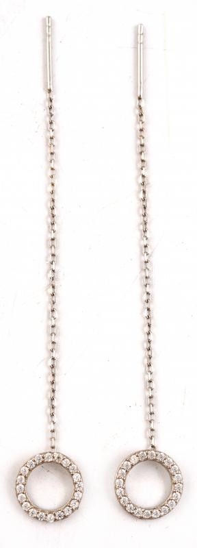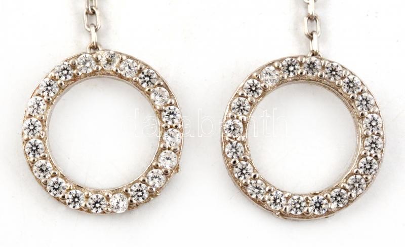 Leírás: Ezüst(Ag) karikás fülbevalópár, apró kövekkel, jelzés nélkül, h: 6 cm, bruttó: 1 g