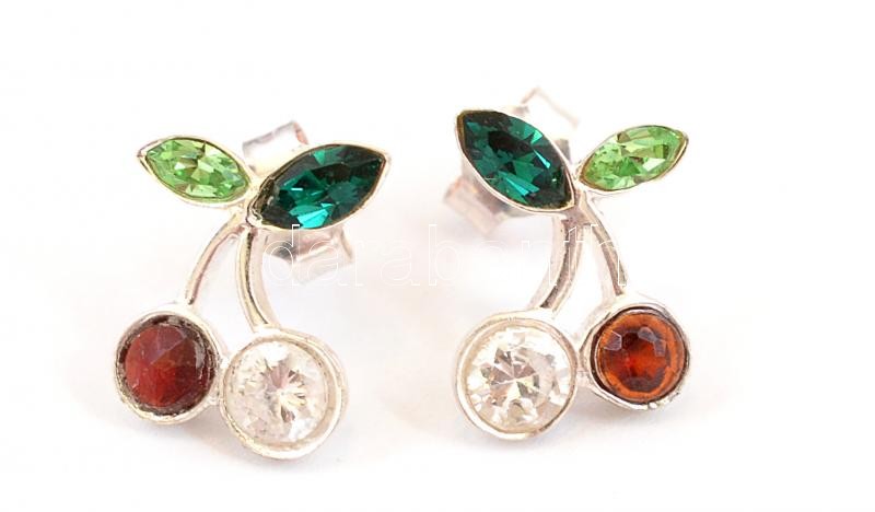 Leírás: Ezüst(Ag) színes kövekkel díszített meggyes fülbevalópár, jelzett, 1,5×1,2 cm, bruttó: 1,7 g
