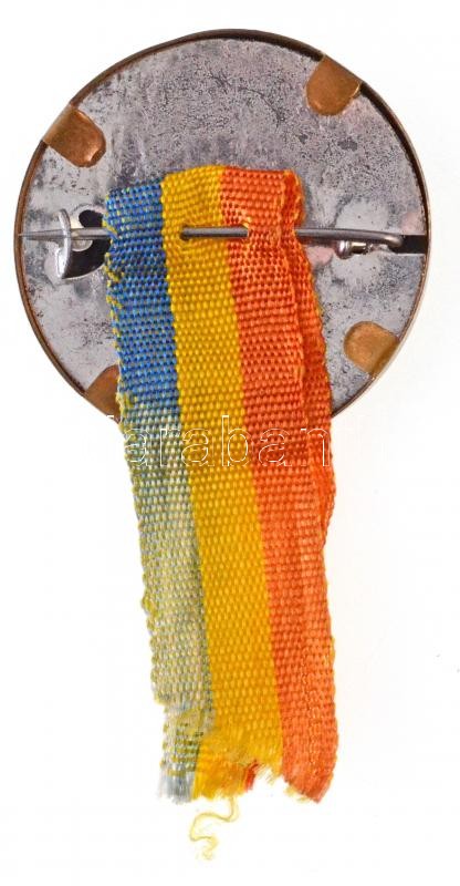 Románia 1934. "AL Vlea CONGRES AL SOCIETATII ROMANE DE CHIRURGIE - SUB PATRONAJUL M.S. REGELUI CAROL II - PRIN CULUTRA LA LIBERTATE - BUCURESTI 5-8 NOV. 1934 (A Román Sebészeti Társaság 5. kongresszusa - II. Károly védnöksége alatt - A szabadság kultúráján keresztül - Bukarest, 1934. november 5-8.)" jelvény, román nemzetiszínű szalaggal (27mm) T:1- Romania 1934. "AL Vlea CONGRES AL SOCIETATII ROMANE DE CHIRURGIE - SUB PATRONAJUL M.S. REGELUI CAROL II - PRIN CULUTRA LA LIBERTATE - BUCURESTI 5-8 NOV. 1934 (The Fifth Congress of the Romanian Surgery Society - Under the Patronage of King Carol II - Through the Culture of Freedom - Bucharest 5-8. November 1934)" badge with Romanian national colors (27mm) C:AU