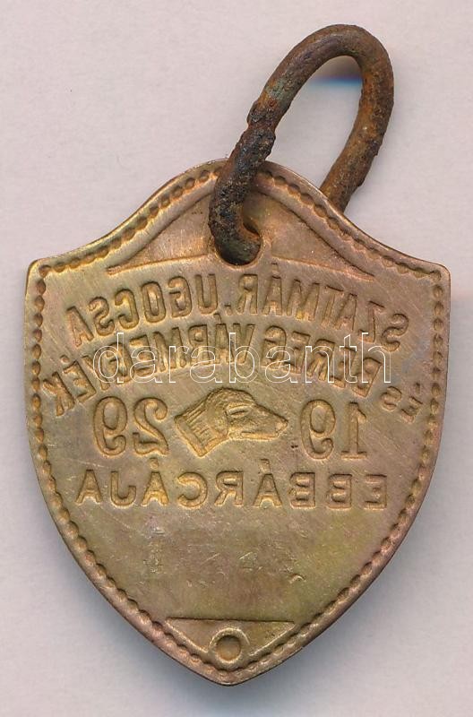 Leírás: 1929. "Szatmár, Ugocsa és Bereg Vármegyék ebbárcája" Cu kutyabárca (29x35mm) T:2 karikán korrózió