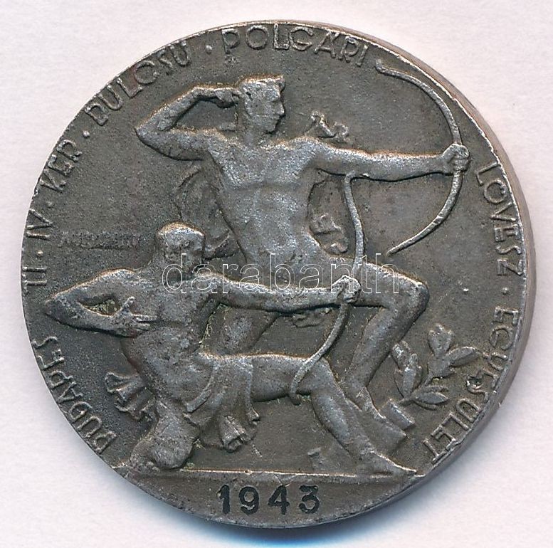 Leírás: Madarassy Walter (1909-1994) 1943. "Budapest IV. Ker. Bulcsu Polgári Lövész Egyesület" ezüstözött Br emlékérem (30mm) T:2
