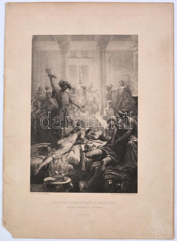 Zichy Mihály rajza után Angerer Gy: Lucifer felköszönti a halottat. Ember tragédiája VI. szín. Fénymetszet, papír, lap széle sérült (szakadásokkal, hiánnyal), metszet ép, 22x15 cm
