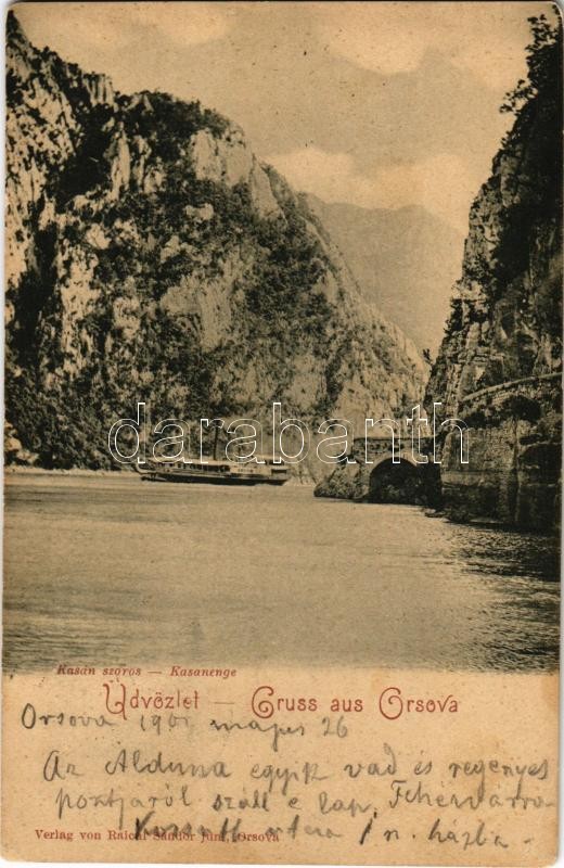 1901 Orsova, Kazán-szoros, gőzhajó. Raichl Sándor kiadása / Kasanenge ... https://www.darabanth.com/hu/372-Gyorsarveres/372.0/Kepeslapok/Erdely~2000006/1901-Orsova-Kazan-szoros-gozhajo-Raichl-Sandor-kiadasa-Kasanenge-Cazane-gorge-steamsh~II2167763