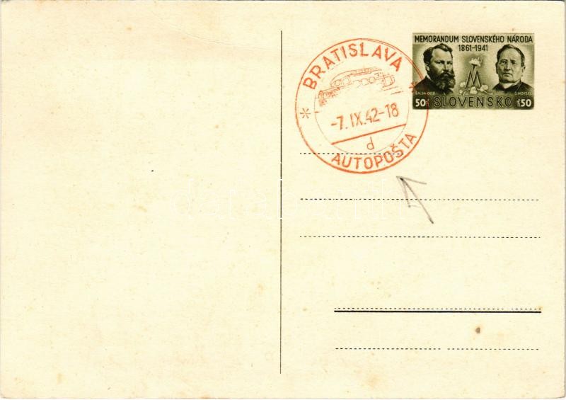 Turócszentmárton, Turciansky Svaty Martin; Memorandové shromazdenie slovenského národna 6. júna 1861 / Szlovák Nemzet Memoranduma / Memorandum of the Slovak nation + "1942 Bratislava Autoposta"