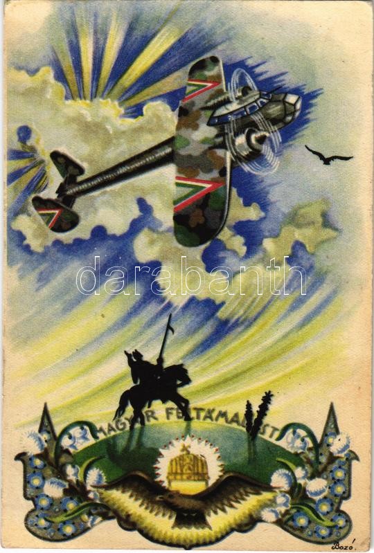 Leírás: 1942 Magyar feltámadást! / Hungarian irredenta propaganda art postcard, military aircraft s: Bozó