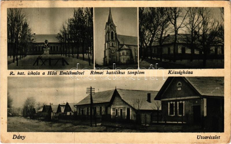 1944 Dány, Római katolikus iskola és templom, Hősi emlékmű, községháza... https://www.darabanth.com/hu/372-Gyorsarveres/372.0/Kepeslapok/Magyarorszag~2000005/1944-Dany-Romai-katolikus-iskola-es-templom-Hosi-emlekmu-kozseghaza-utca-EK~II2173342