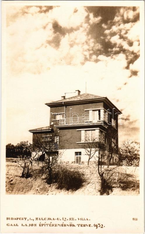 Budapest XII. Orbánhegy, Zulejka utca 12. sz. villa. Gaal Lajos építés... https://www.darabanth.com/hu/372-Gyorsarveres/372.0/Kepeslapok/Magyarorszag~2000005/Budapest-XII-Orbanhegy-Zulejka-utca-12-sz-villa-Gaal-Lajos-epiteszmernok-terve-photo~II2174420