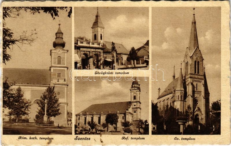 Leírás: Szentes, Római katolikus, református, evangélikus és görögkeleti templomok (EK)