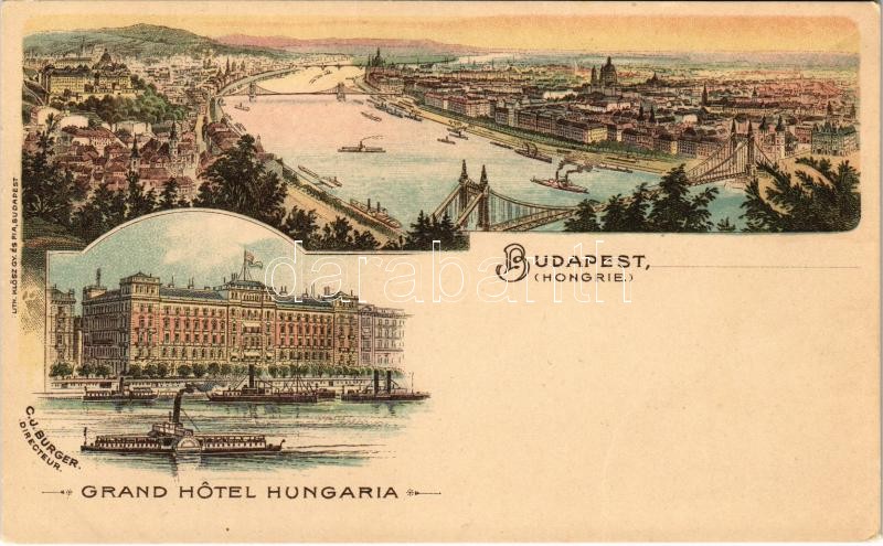 Leírás: Budapest, Grand Hotel Hungária, Corso. C.J. Burger Art Nouveau litho