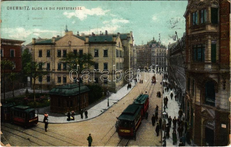 1913 Chemnitz, Blick in die Poststrasse / street, trams (EK) https://www.darabanth.com/hu/372-Gyorsarveres/372.0/Kepeslapok/Nemetorszag~2000044/1913-Chemnitz-Blick-in-die-Poststrasse-street-trams-EK~II2173678