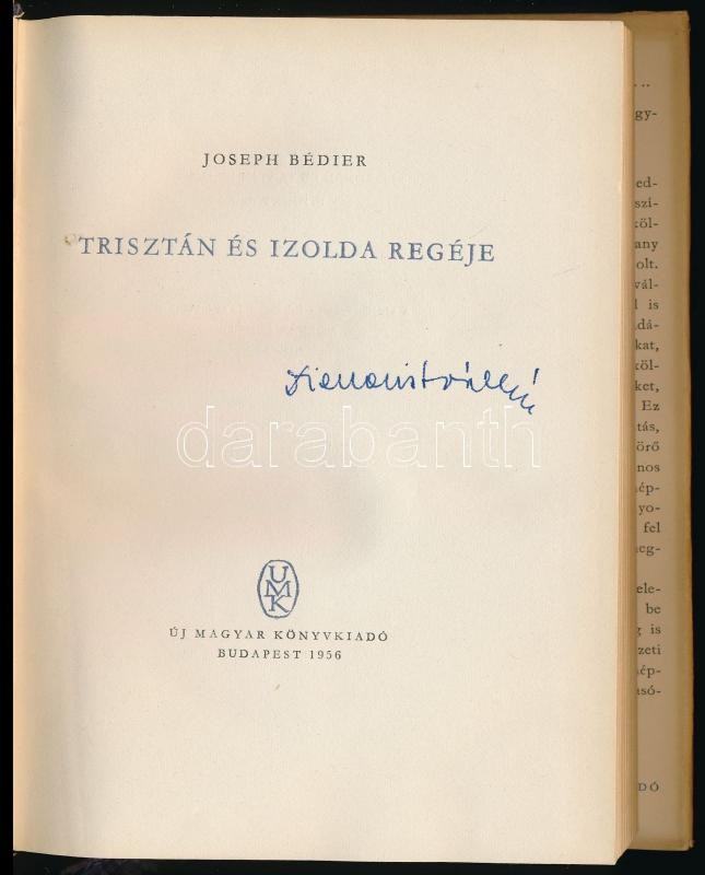 Joseph Bédier: Trisztán és Izolda regéje. Ford. és az utószót írta: Pap Gábor. A védőborítékot, a fedéltervet ás az iniciálékat Molnár Ágnes rajzolta. Bp., 1956., Új Magyar Könyvkiadó. Kiadói egészvászon-kötésben, kiadói papír védőborítóban, jó állapotban.