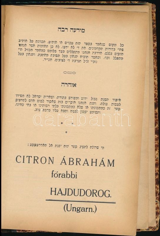 Leírás: Héber nyelvű könyv. Újrakötött félvászon kötés, kopottas állapotban.