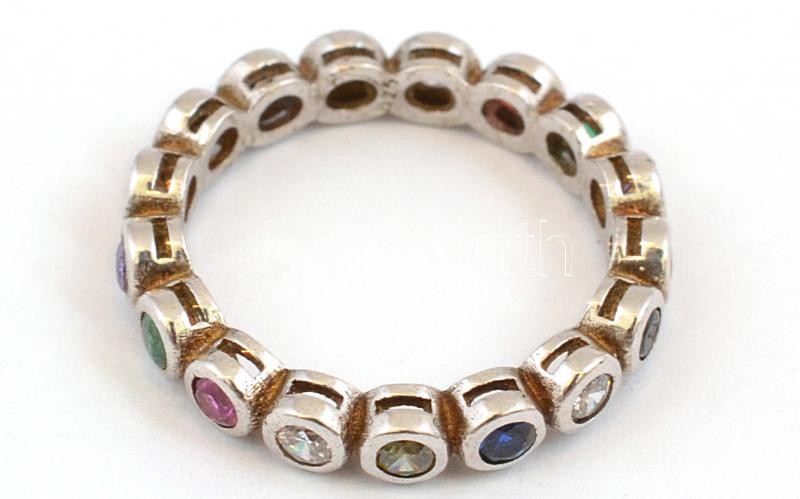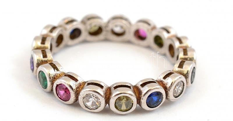 Leírás: Ezüst(Ag) gyűrű, színes kövekkel, jelzett, méret: 53, bruttó: 2,8 g