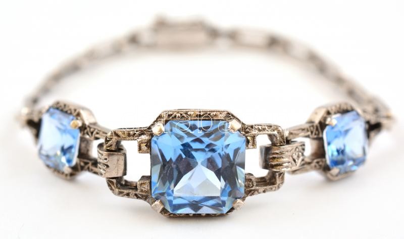Leírás: Ezüst(Ag) karkötő, szintetikus kék kővel, jelzett, h: 16 cm, bruttó: 9,4 g