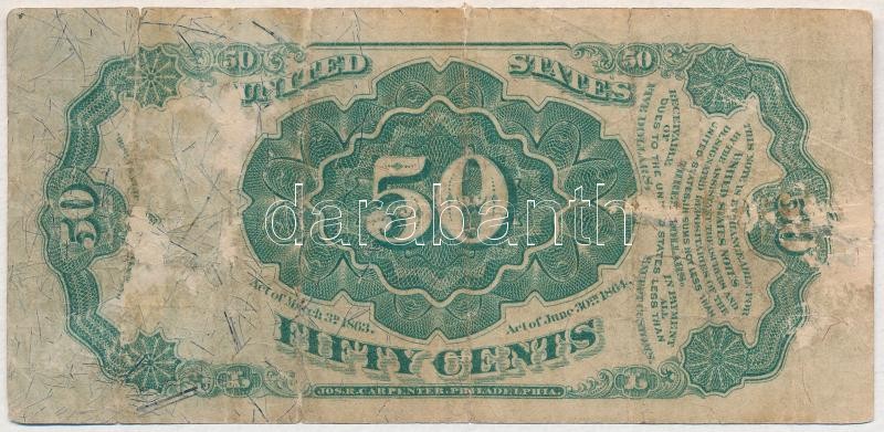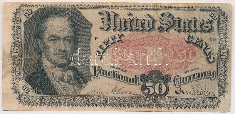 USA 1875. 50 Ce... https://www.darabanth.com/hu/372-Gyorsarveres/372.0/Numizmatika/Kulfoldi-bankjegyek~1500012/Amerikai-Egyesult-Allamok-1875-50c-TIII-szakadasok-USA-1875-50-Cents-CVG-tears-Krause-P2312~II2168760