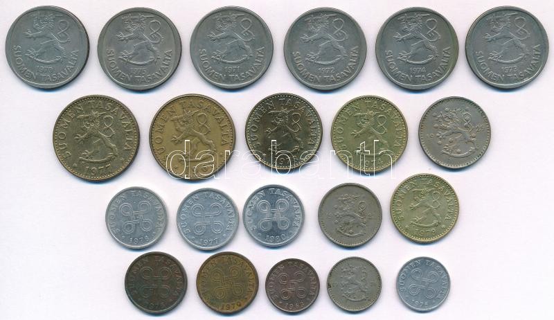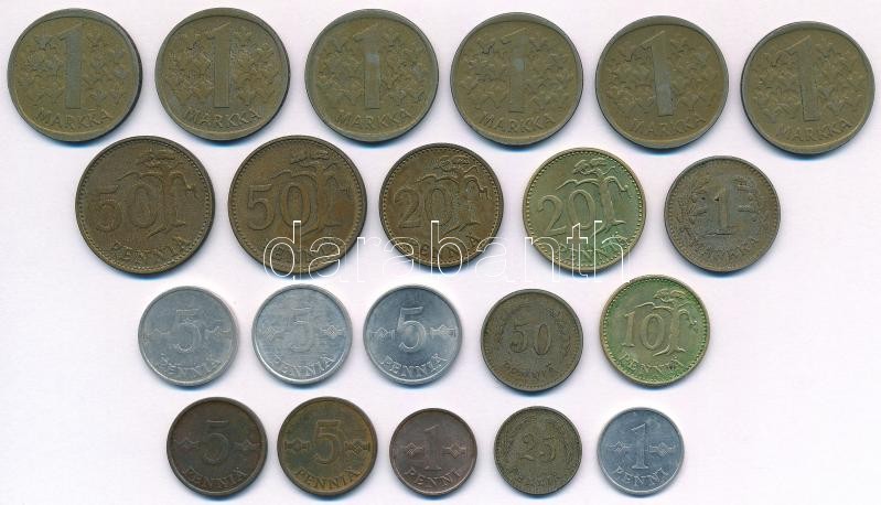 Finland 1921-1979. 1 Pen... https://www.darabanth.com/hu/372-Gyorsarveres/372.0/Numizmatika/Kulfoldi-fem-es-ezustpenzek~1500013/Finnorszag-1921-1979-1p-1M-21x-Tvegyes-Finland-1921-1979-1-Pennia-1-Marakka-21x-Cmixed~II2170936