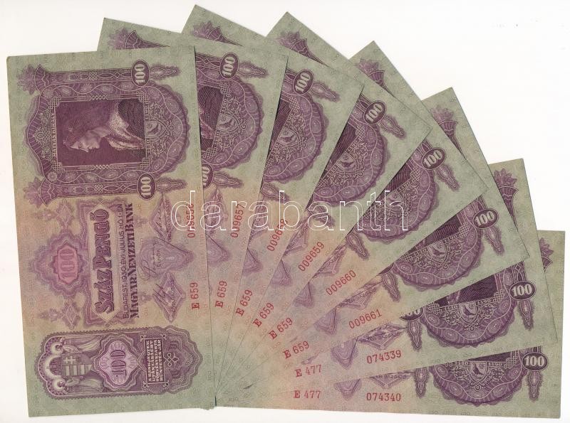 Leírás: 1930. 100P (8x) 6+2 sorszámkövetők T:II