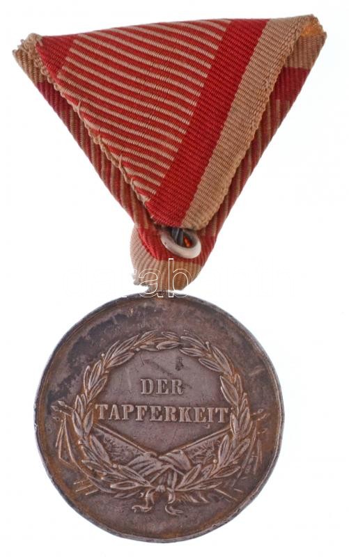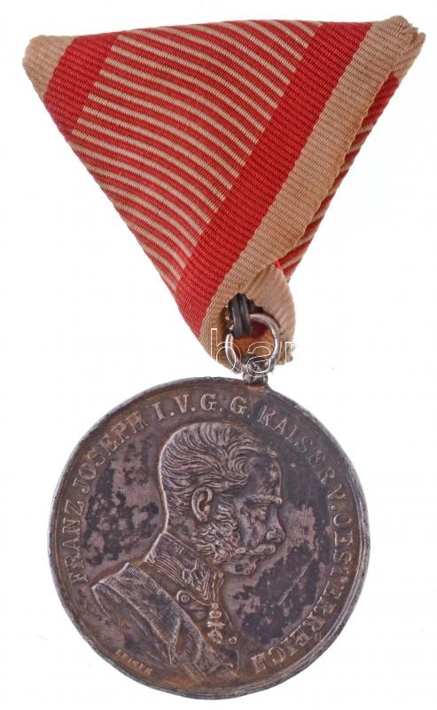 1914. "Ferenc József I. osztályú Ezüst Vitézségi Érem" peremén jelzett Ag kitüntetés nem eredeti mellszalagon és kontraszemmel. Szign.: Leisek T:2- ph., sérült fül Hungary 1914. "Silver Gallantry Medal, 1st Class" Ag decoration, hallmarked on edge, with not original ribbon and ring. Sign: Leisek C:XF edge error, damaged ear NMK 131.
